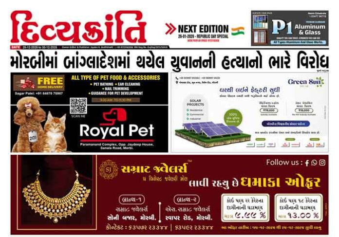 HomeE-paperદિવ્યક્રાંતિ ન્યૂઝનો તા. 25-12-2025 નો અંક પ્રસિદ્ધ થઇ ગયો છે, ઈ-પેપર ડોઉનલોડ... E-paper દિવ્યક્રાંતિ ન્યૂઝનો તા. 25-12-2025 નો અંક પ્રસિદ્ધ થઇ ગયો છે, ઈ-પેપર ડોઉનલોડ કરવા નીચે આપેલ લિંક પર વિઝિટ કરો By admin December 24, 2025 0 0 Share FacebookTwitterWhatsAppCopy URL DOWNLOAD 25-12-2025.PDF https://divyakranti.com/wp-content/uploads/2025/12/DIVYAKRANTI-NEWS-25-12-2025-1.pdf Share FacebookTwitterWhatsAppCopy URL Previous articleગૂગલે ભારતમાં લોન્ચ કરી ઇમરજન્સી સર્વિસ: સંકટના સમયે યુઝર્સની ચોક્કસ લોકેશન મોકલવામાં આવશે…Next articleમોરબી : સેવી ઇન્ટરનેશનલ સ્કૂલ, મોરબીના વિદ્યાર્થીઓ દ્વારા સમાકાંઠે તાલુકા પોલીસ લાઈનમાં હેલ્થ અવેરનેસ કેમ્પ યોજાયો adminhttps://divyakranti.com RELATED ARTICLES E-paper દિવ્યક્રાંતિ ન્યુઝનો ‘નવરાત્રિ સ્પેશ્યલ’ એડિશન પ્રસિદ્ધ થઇ ગયો છે September 27, 2025 Most Popular જૂની ગાડીને ઇલેક્ટ્રિકમાં કરો કન્વર્ટ… સરકાર આપશે 50,000 રૂપિયા! નવી EV નીતિનો પ્રસ્તાવ January 8, 2026 સાવધાન! આવી રોજિંદી આદતો તમારા હાડકાંને નબળા કરી દેશે, અત્યારથી જ સુધારો January 8, 2026 મોરબીના જલારામ મંદિરે યોજાયેલ નેત્રમણી કેમ્પમાં 368 દર્દીઓએ લાભ લીધો January 8, 2026 મુખ્યમંત્રી ભુપેન્દ્રભાઈ પટેલની ઉપસ્થિતિમાં ધોળેશ્વર મહાદેવ મંદિરે સામુહિક ઓમકાર નાદનો શુભારંભ January 8, 2026 Load more Recent Comments
