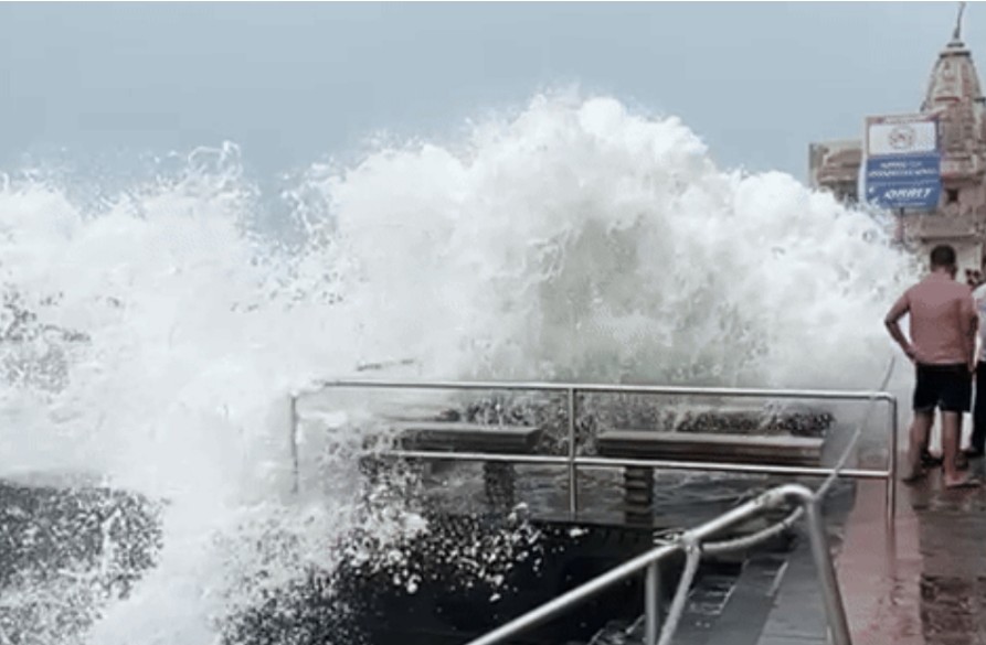 દ્વારકાના દરિયામાં જોરદાર કરંટ જોવા મળ્યો છે, ત્યારે ગોમતી ઘાટે 10 થી 15 ફૂટ ઊંચા મોજાં જોવા મળ્યા છે. તેમજ સંગમઘાટ, લાઈટ હાઉસ અને ગોમતી ઘાટ નજીકના વિસ્તારોમાં પણ ઊંચા મોજાં જોવા મળ્યા.