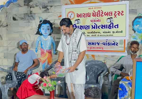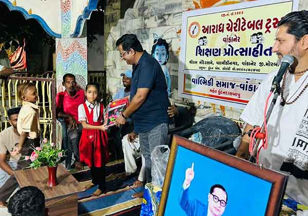 તા. ૧૦-૦૭-૨૦૨૫, બુધવાર – વાંકાનેર: ગુરૂ પૂર્ણિમાના પાવન દિવસે આરાધ ચેરિટેબલ ટ્રસ્ટ, વાંકાનેર દ્વારા વાલ્મિકી સમાજના વિધાર્થી બાળકોને શિક્ષણ સહાયરૂપ વિધ્યા કિટનું વિતરણ કરવામાં આવ્યું હતું.