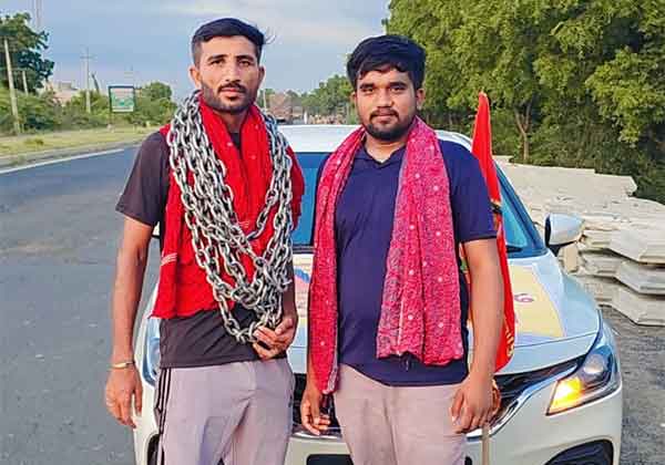 મોરબી : અડગ આસ્થા અને અતૂટ શ્રદ્ધાનું અનોખું દ્રશ્ય મોરબીમાં જોવા મળ્યું છે. શહેરના યુવાન ઓમદેવસિંહ જાડેજા માતાજીના આશીર્વાદ માટે 20 કિલોની ભારે સાંકળ શરીરે બાંધીને માતાના મઢે પદયાત્રા પર નીકળ્યા છે.આ પવિત્ર યાત્રામાં તેમના સાથે સત્યમભાઈ ગૌસ્વામી (જુના સાદુળકા વાળા) પણ જોડાયા છે. બંને ભક્તો માતાજી પ્રત્યેની શ્રદ્ધા, મનોબળ અને સમર્પણ સાથે પગપાળા યાત્રા કરી રહ્યા છે.ભારે સાંકળ બાંધીને પદયાત્રા કરવાનો સંકલ્પ ઓમદેવસિંહની આંતરિક શક્તિ અને અડગ આસ્થાનું પ્રતિક છે. સાથે સત્યમભાઈની ભક્તિ પણ આ યાત્રાને વિશેષ બનાવે છે.સ્થાનિક ભક્તોમાં આ અનોખી પદયાત્રા ચર્ચાનો વિષય બની છે અને ઘણા લોકો તેમના આ ભક્તિપ્રેરિત કાર્યને પ્રેરણારૂપ ગણાવી રહ્યા છે.