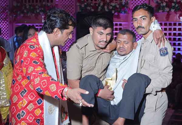 મોરબી : સિદ્ધિવિનાયક ગણેશ મહોત્સવમાં માનવતાને પ્રાથમિકતા આપતા મોરબી સીટી એ ડિવિઝન પોલીસ સ્ટેશન ખાતે ફરજ બજાવતા જી.આર.ડી. જવાન રવિરાજસિંહ જાડેજા (ખારચિયા) તથા યુવરાજસિંહ જાડેજા (મધુપુર) એ એક અપંગ ભક્તને પોતાની ખભે ઊંચકી પંડાલ સુધી પહોંચાડ્યો હતો.