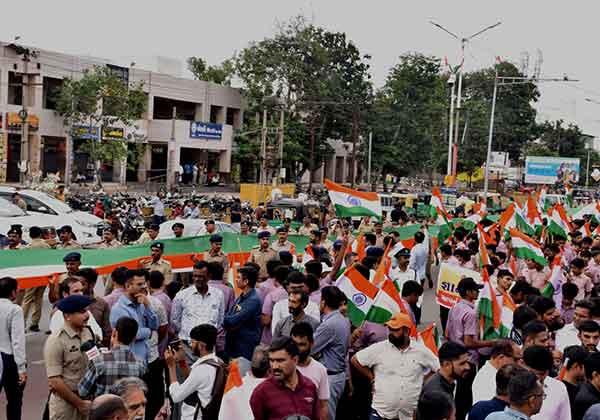 પોલીસના જવાનો ૩૦૦ ગજ લાંબા તિરંગા સાથે યાત્રામાં જોડાયા; બન્યું આકર્ષણનું કેન્દ્ર