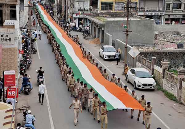 પોલીસના જવાનો ૩૦૦ ગજ લાંબા તિરંગા સાથે યાત્રામાં જોડાયા; બન્યું આકર્ષણનું કેન્દ્ર