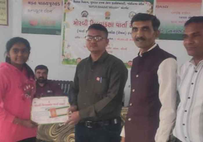 જીસીઈઆરટી દ્વારા નિપુણ ભારત અંતર્ગત મોરબી જિલ્લા કક્ષાની વાર્તા લેખન સ્પર્ધામા મહેન્દ્રનગર ક્ધયા પ્રા. શાળાની અંજલી શૈલેષભાઈ લાંઘણોજાએ પ્રથમ નંબર મેળવી મહેન્દ્રનગર કન્યા શાળા પરિવારનું ગૌરવ વધારેલ છે.