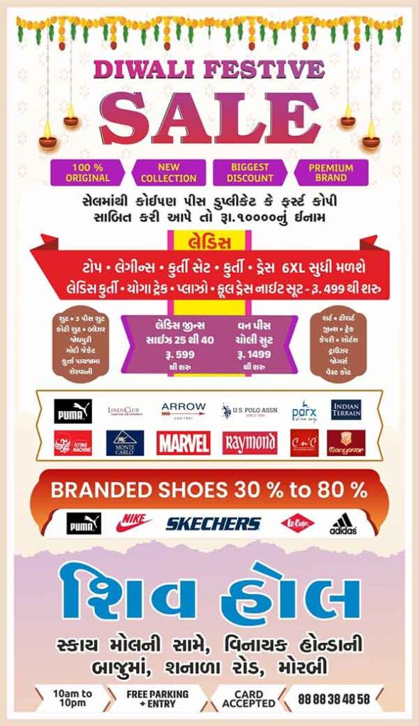 વિકાસ સપ્તાહ અને શહેરી વિકાસ વર્ષની ઉજવણી અંતર્ગત વોકલ ફોર લોકલની નેમ સાથે મોરબી મહાનગરપાલિકા દ્વારા ૦૯ થી ૧૮ ઓક્ટોબર દરમિયાન મોરબી શહેરમાં એલ.ઈ. કોલેજ ક્રિકેટ ગ્રાઉન્ડ ખાતે સ્વદેશી મેળા(Shopping Festival)નું આયોજન કરવામાં આવ્યું છે. જે પ્રદર્શન-વેચાણ મેળાને આજે કલેક્ટર કે.બી. ઝવેરી અને મહાનગરપાલિકાના કમિશ્નર સ્વપ્નિલ ખરેની પ્રેરક ઉપસ્થિતિમાં ખુલ્લો મુકવામાં આવ્યો હતો.