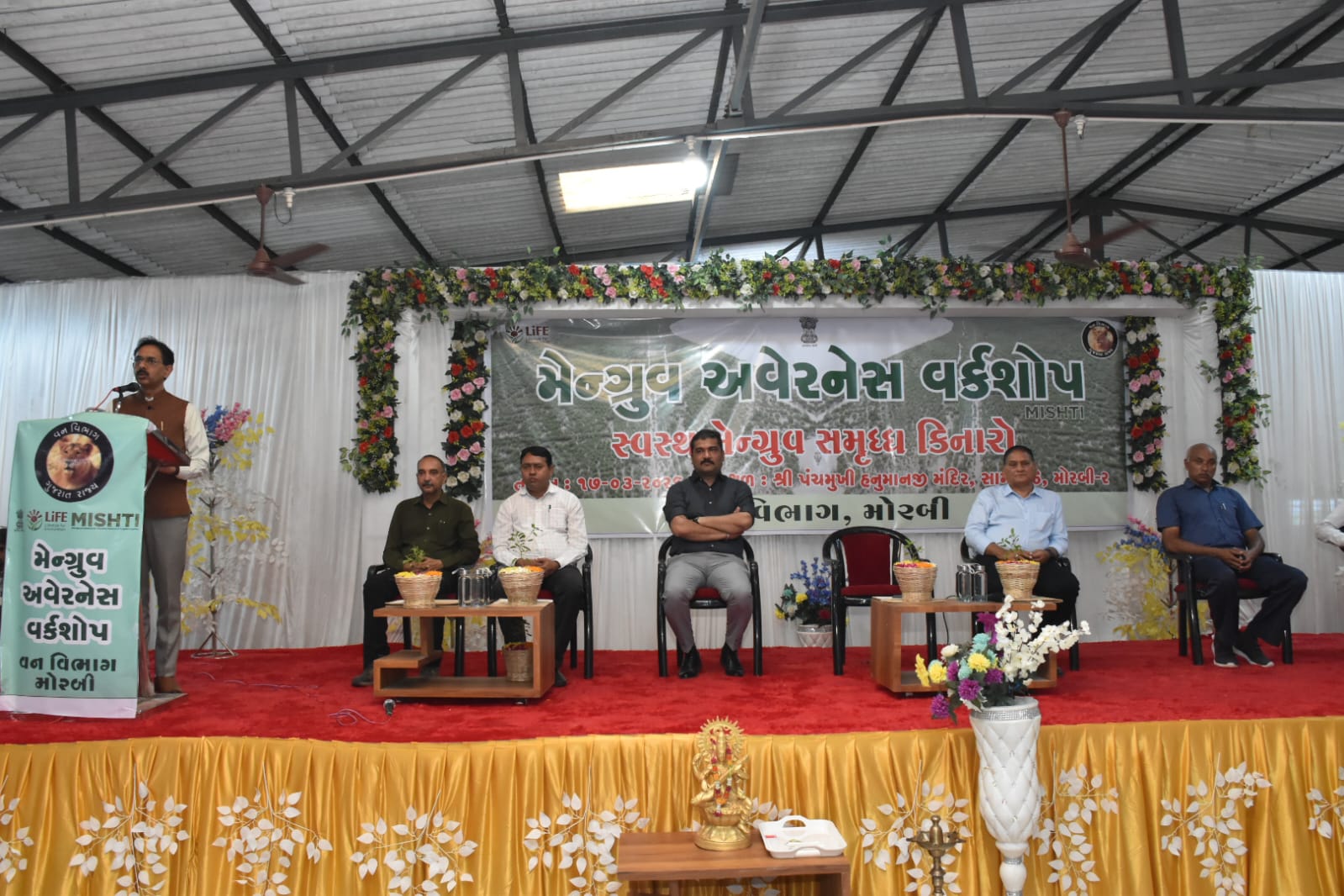 મોરબી વન વિભાગ દ્વારા પંચમુખી હનુમાનજી મંદિરના હૉલ ખાતે દરિયાકાંઠાના સંરક્ષણ અને પર્યાવરણની જાળવણીના ઉમદા હેતુ સાથે ‘સ્વસ્થ મેન્ગ્રુવ, સમૃદ્ધ કિનારો’ વિષય પર એક વિશેષ મેન્ગ્રુવ અવેરનેસ વર્કશોપ યોજાયો હતો.