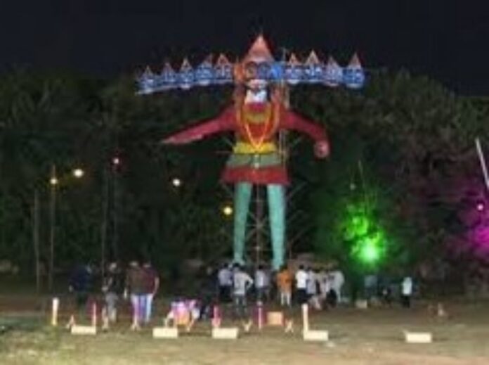 રાજકોટમાં ધોધમારઆજે રાજ્યભરમાં અસત્ય પર સત્યના વિજયના પર્વની ઉજવણી કરવામાં આવી રહી છે ત્યારે રાજકોટમાં પણ રાવણ દહનની તૈયારીઓ પૂર્ણતાના આરે પહોંચી ચૂકી છે. રેસકોર્સ ગ્રાઉન્ડ ખાતે 54 ફૂટ ઉંચા રાવણના પૂતળાનું દહન કરાશે. વિશ્વ હિન્દુ પરિષદ દ્વારા રાવણદહનનું ભવ્ય આયોજન કરવામાં આવ્યું છે. ૩ મહિના પહેલા ઉત્તરપ્રદેશના 20 જેટલા કારીગરો દ્વારા કામગીરી કરાઈ આ કાર્યક્રમમાં 200 જેટલા કાર્યકરો કામગીરીમાં જોડાયા. આતશબાજી, લેસર શો, શસ્ત્ર પૂજન સહિતના કાર્યક્રમોનું પણ આયોજન કરવામાં આવ્યું છે. છેલ્લા 28 વર્ષથી આ આયોજન કરવામાં આવી રહ્યું છે.