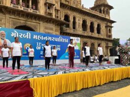 મોરબીમાં આંતરરાષ્ટ્રીય યોગ દિનની જિલ્લાકક્ષાની ઉજવણીમાં સામૂહિક યોગા અભ્યાસ કરાયો