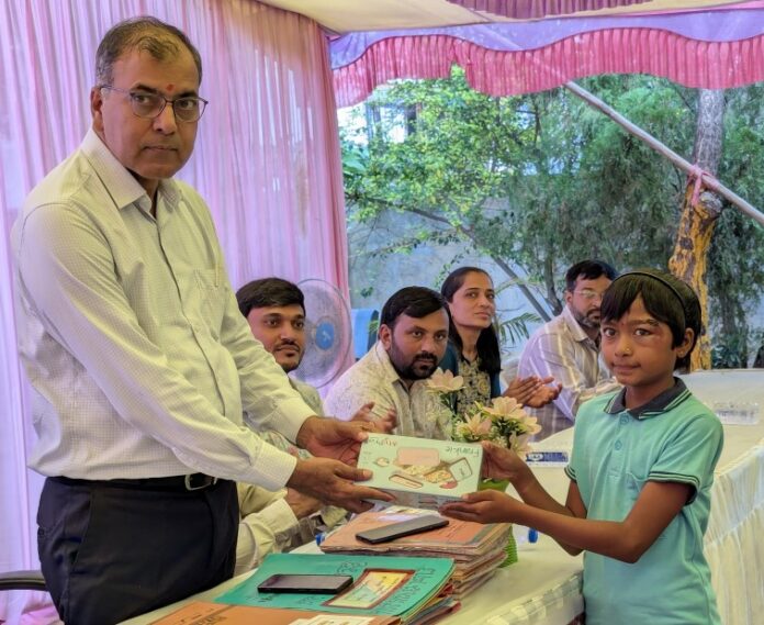 આ પ્રસંગે દાતાઓના સહયોગથી નવા પ્રવેશ મેળવનાર બાળકોને શૈક્ષણિક કીટ અર્પણ કરવામાં આવી હતી.