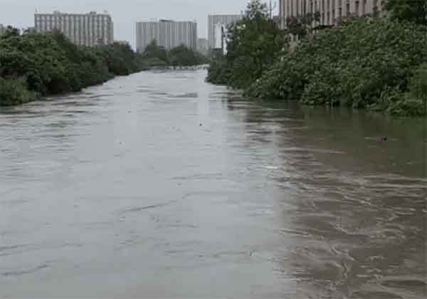 સુરતમાં સોમવારથી સતત ધોધમાર વરસાદ ખાબકી રહ્યો છે. જેના લીધે સુરતની ‘સૂરત’ બદલાઇ ગઇ છે. સુરત ‘સ્માર્ટ સિટી’ના બદલે લેક સિટી બની ગયું છે. ભારે વરસાદના લીધે ખાડીમાં પૂરની સ્થિતિ સર્જાઇ છે. ત્યારે પુણા-કુંભારિયા વિસ્તારમાં આજે સવારે એક યુવક ખાડીમાં યુવક તણાઇ જતાં ફાયરની ટીમે યુવક શોધખોળ આદરી છે.