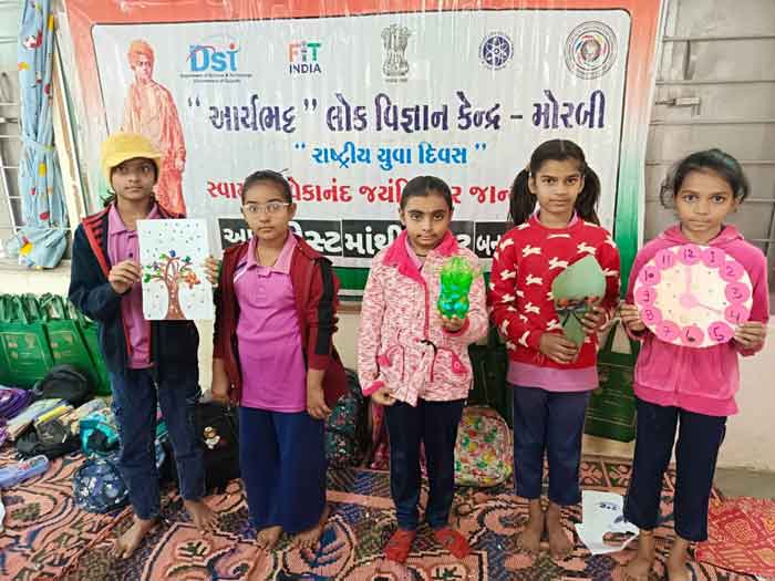 આર્યભટ્ટ લોક વિજ્ઞાન કેન્દ્ર, મોરબી તથા નાની વાવડી કન્યા તાલુકા શાળા ના સંયુક્ત ઉપક્રમે સ્વામી વિવેકાનંદ જયંતિ નિમિત્તે “વેસ્ટ માંથી બેસ્ટ” સ્પર્ધાનું સફળ આયોજન કરવામાં આવ્યું.